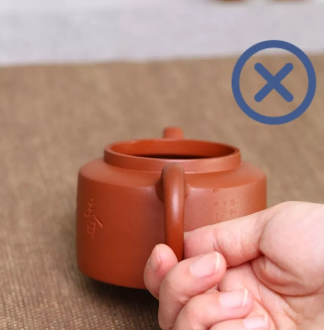 紫砂壺蓋取下,倒扣桌面上,壺嘴、壺口、壺把三點是在同一水平上就是好壺。